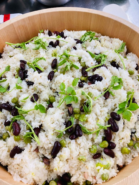 広東風酢豚・海藻と冷豆腐の四川風・春雨の酢さっぱりスープ・赤いんげん豆ご飯
